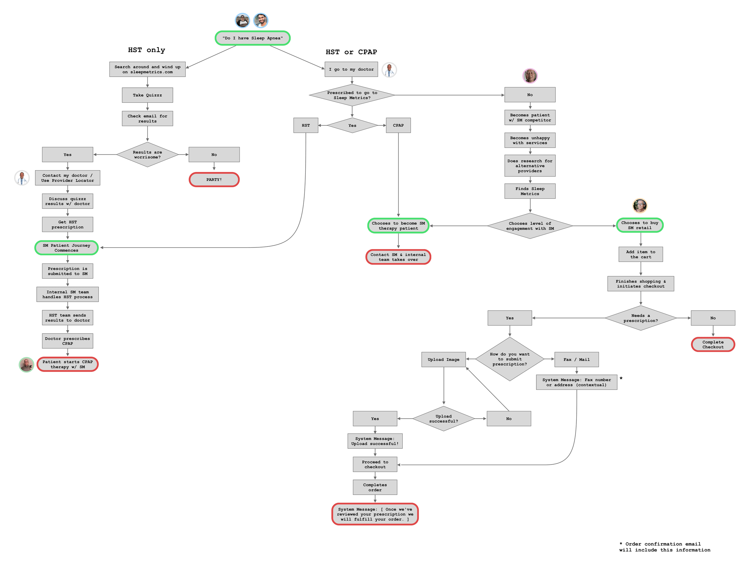 “As little as possible, as much as necessary” is my battle cry for all things design, and we took that approach in creating Sleep Metrics’ user personas. The user base for sleep apnea therapies is very extensive (as health doesn’t choose humans based on demographics or psychographics), but we were able to whittle it down to 5 customer personas and one doctor persona.