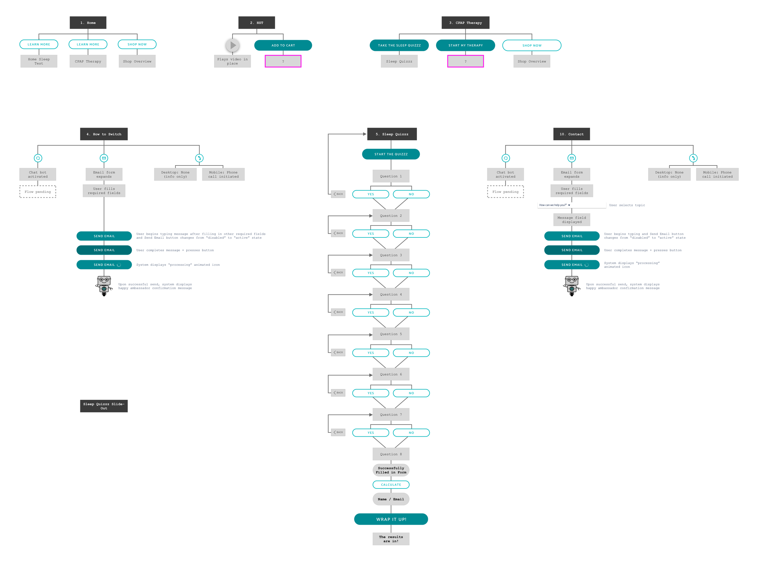 Based on information uncovered in the Research phase for this project, I created user flows based on our various User Personas. This culminated in an updated and streamlined new site map for their website.